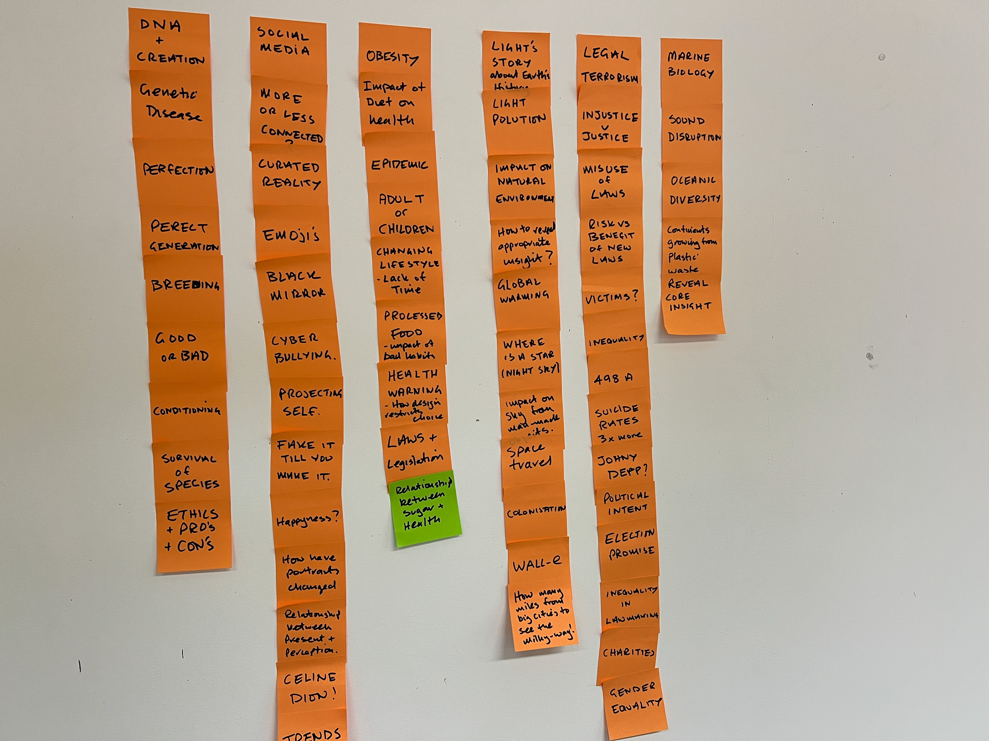The first day of the new module began with an overview of what to expect in the coming weeks. The emphasis was on increased testing, prototyping, making, detailing, and focusing on the craft and art direction of the final artefacts.