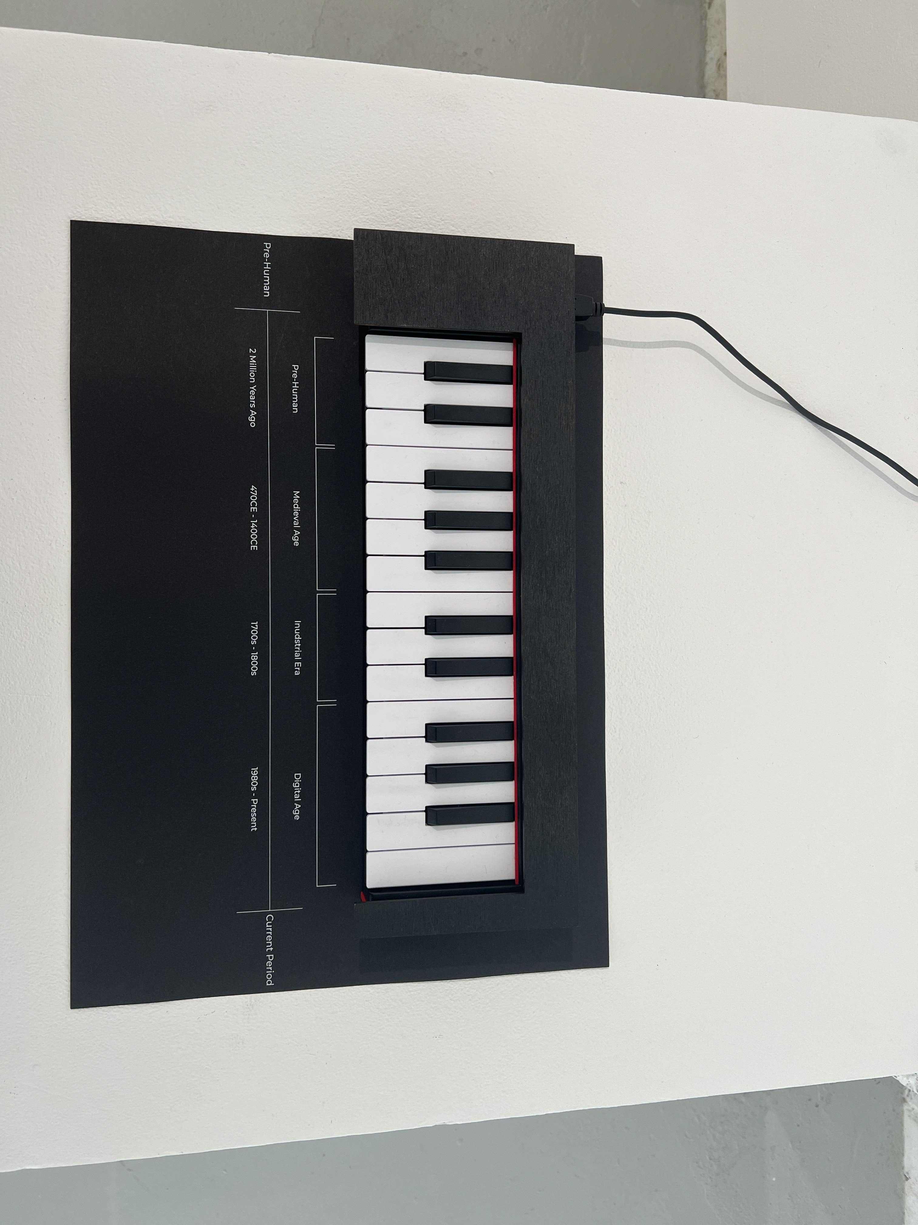 "Disrupted Nature": An immersive exploration of noise's impact on the natural world, depicted through a symbolic musical keyboard. This artefact examines the evolution and impact of noise disruptions from pre-human times to the present, using soundscape ecology theory.