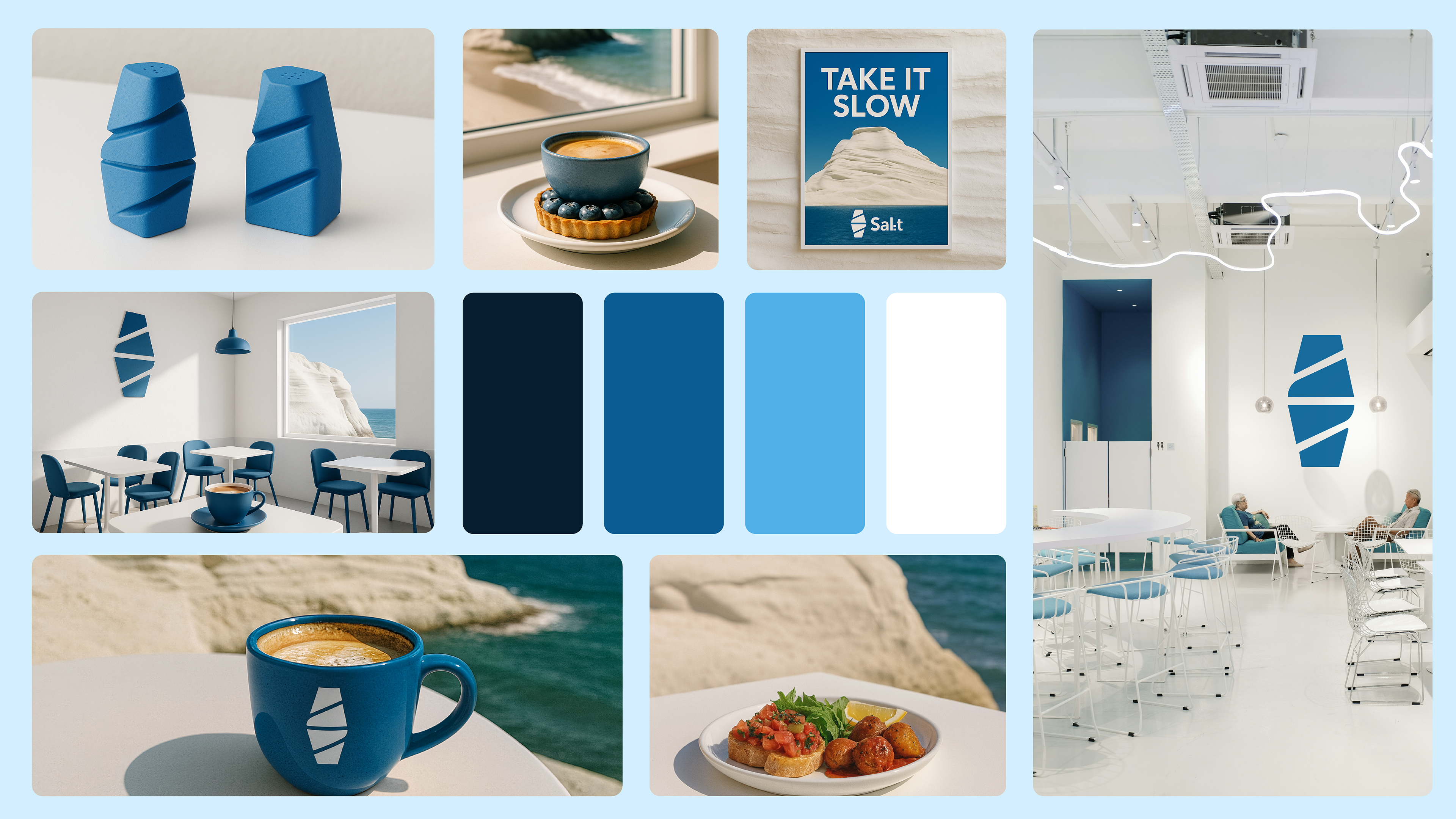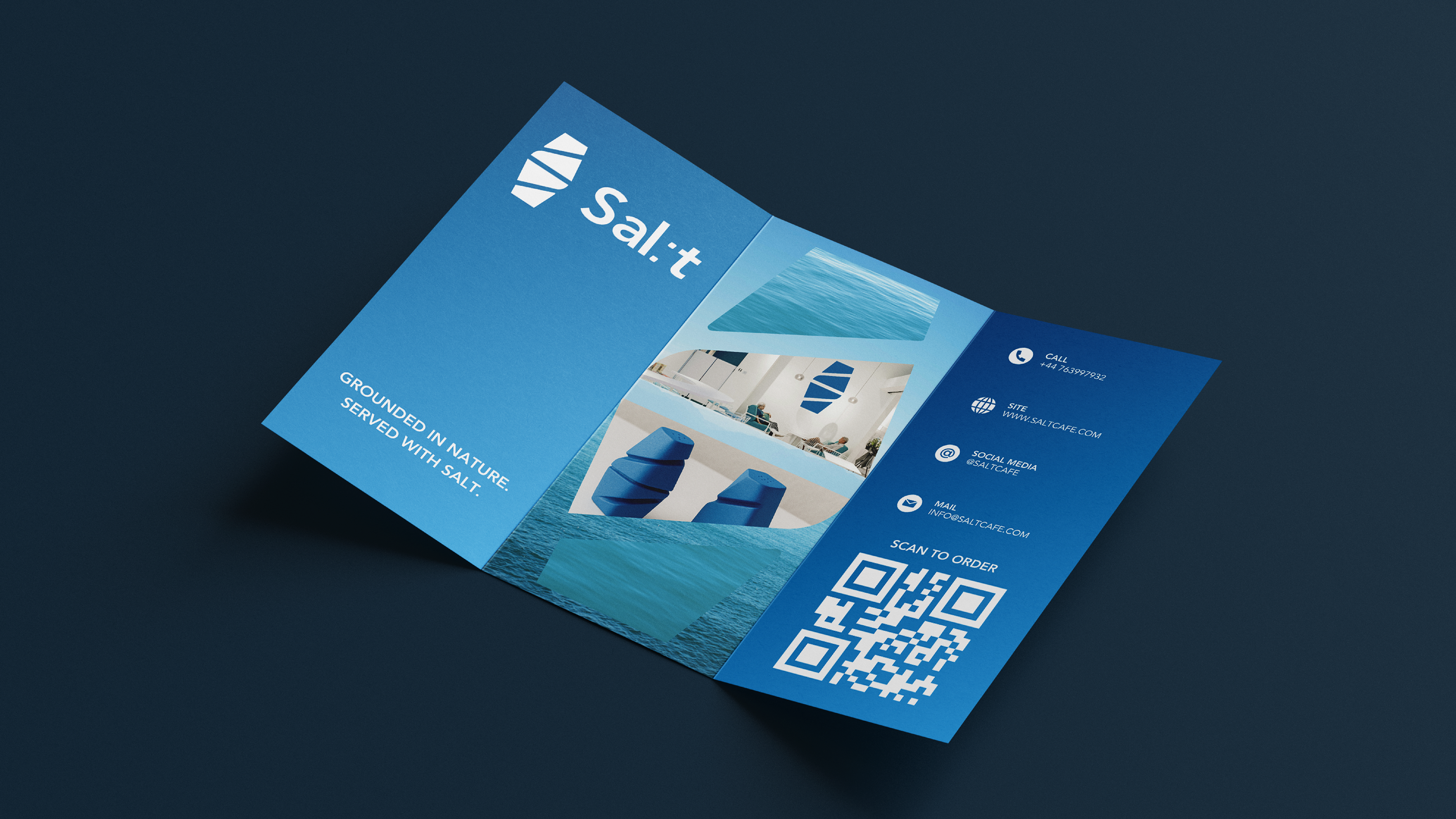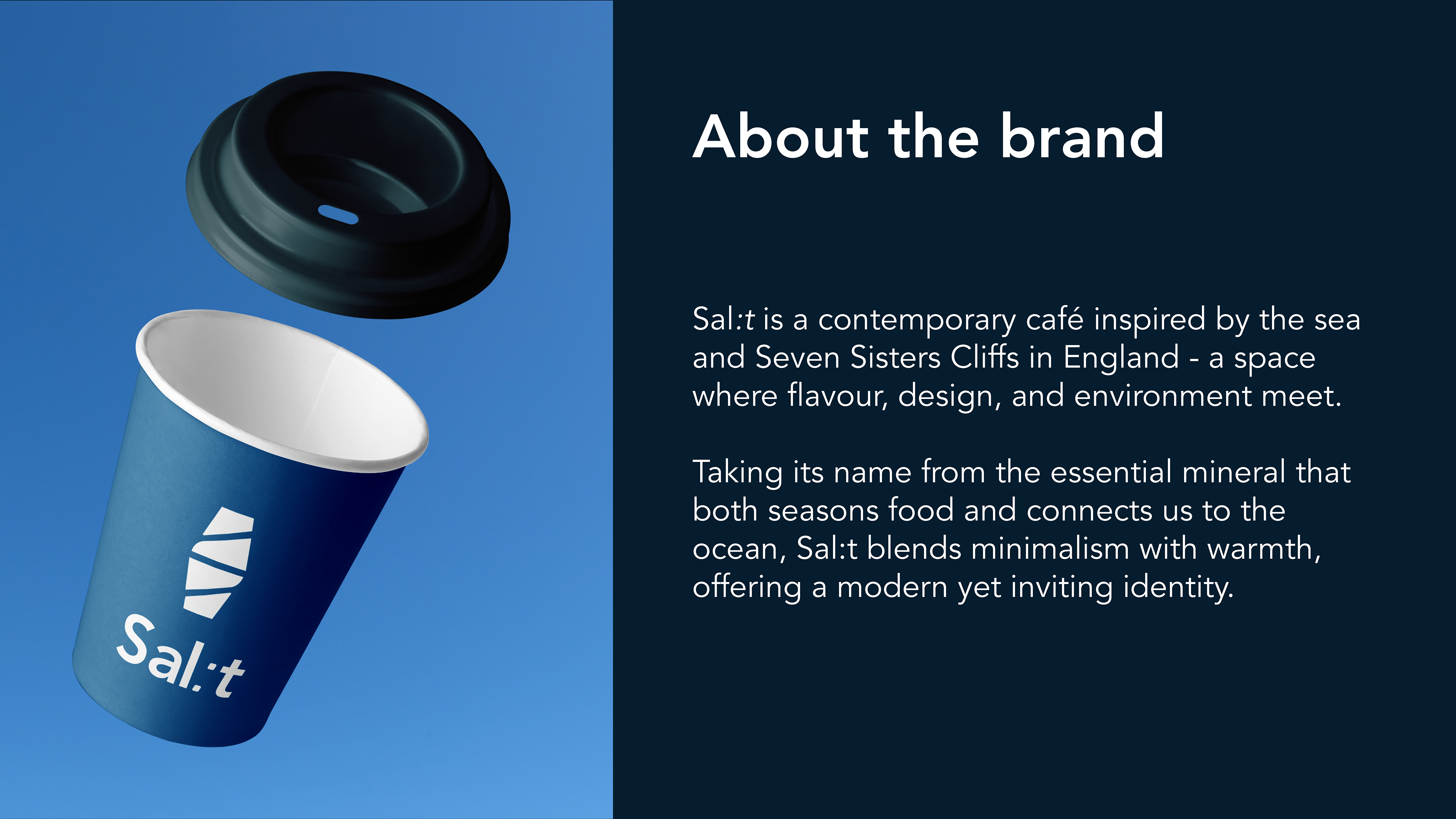 The resulting brand, Sal:t, turns the cliff’s natural form into a symbol of escape. Through its clean identity, coastal palette, and immersive storytelling, the café transforms into more than a place for food and coffee; it becomes a moment of calm and connection by the sea.