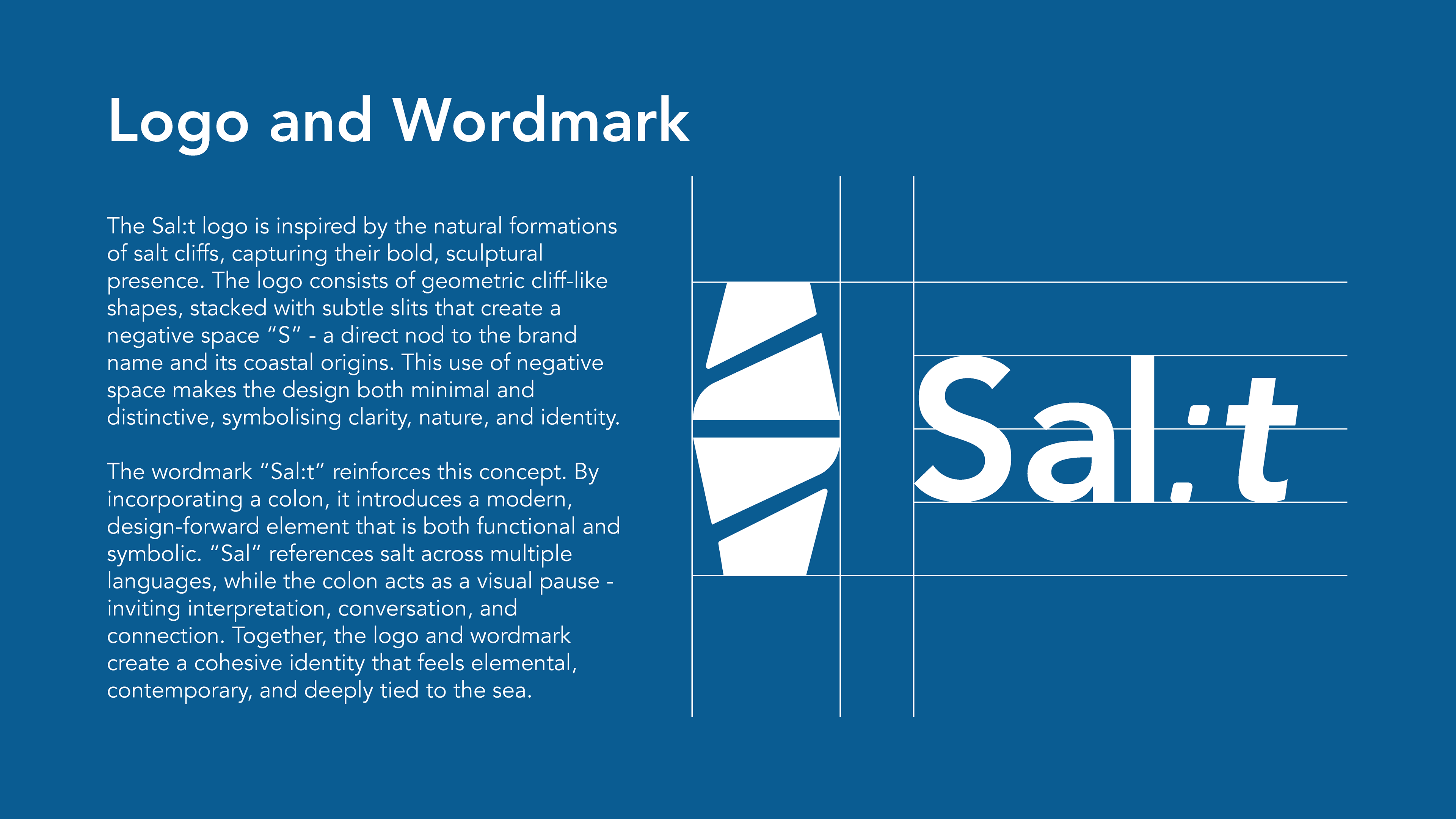 The challenge was to create a visual identity that felt both minimal and bold, inspired by the striking salt cliffs, while also being relatable and inviting to travellers and locals alike. It needed to strike a balance between coastal serenity and a strong contemporary presence.