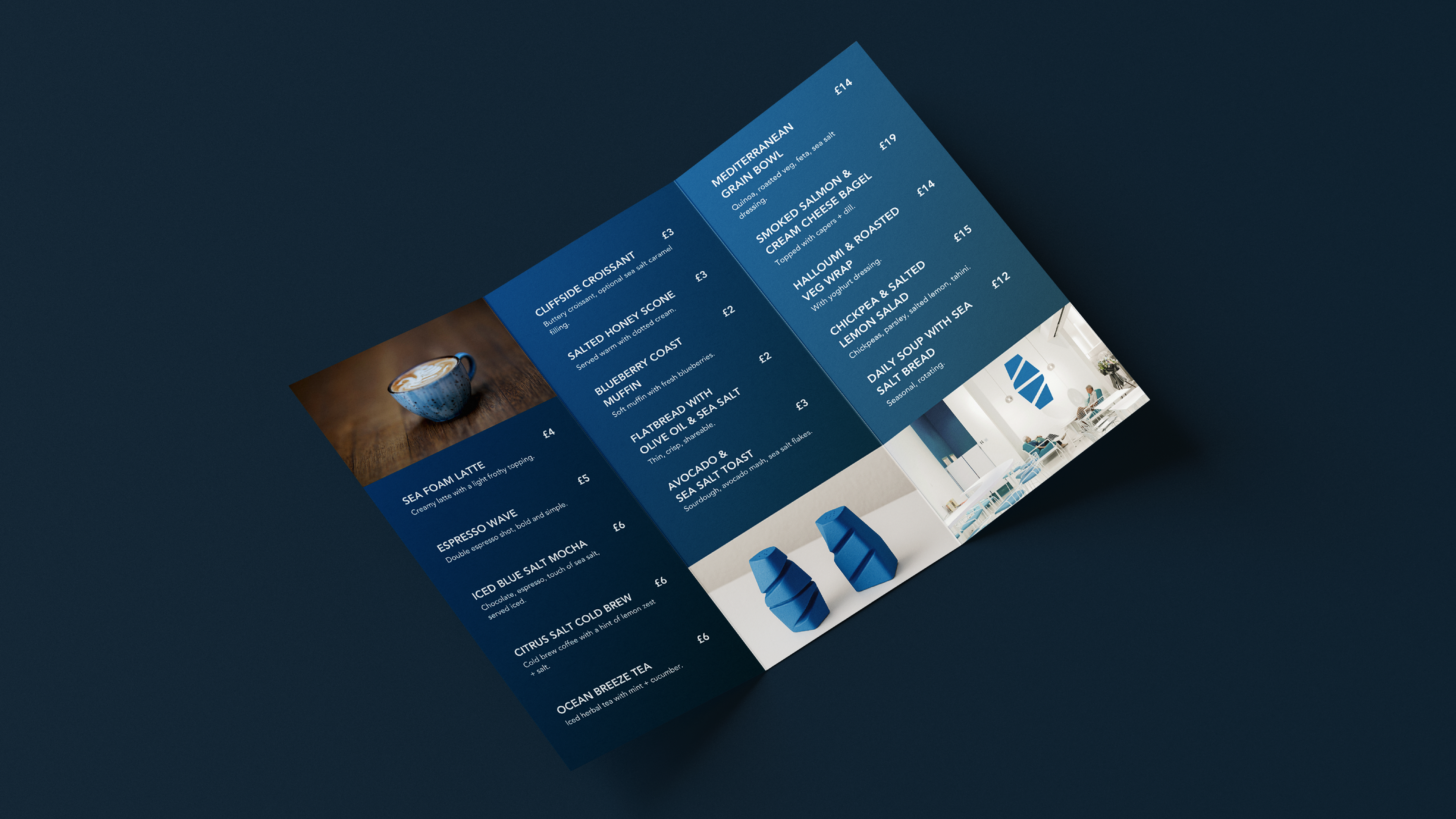 During a visit to the Seven Sisters cliffs, I discovered a small family-owned café tucked by the beach. The owner, Margaret Hale, spoke about wanting her café to feel like a pause from the rush of everyday life. The brief was to capture that sense of calm, rooted in the sea and cliffs, and translate it into a brand that could grow beyond the shore.